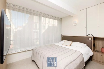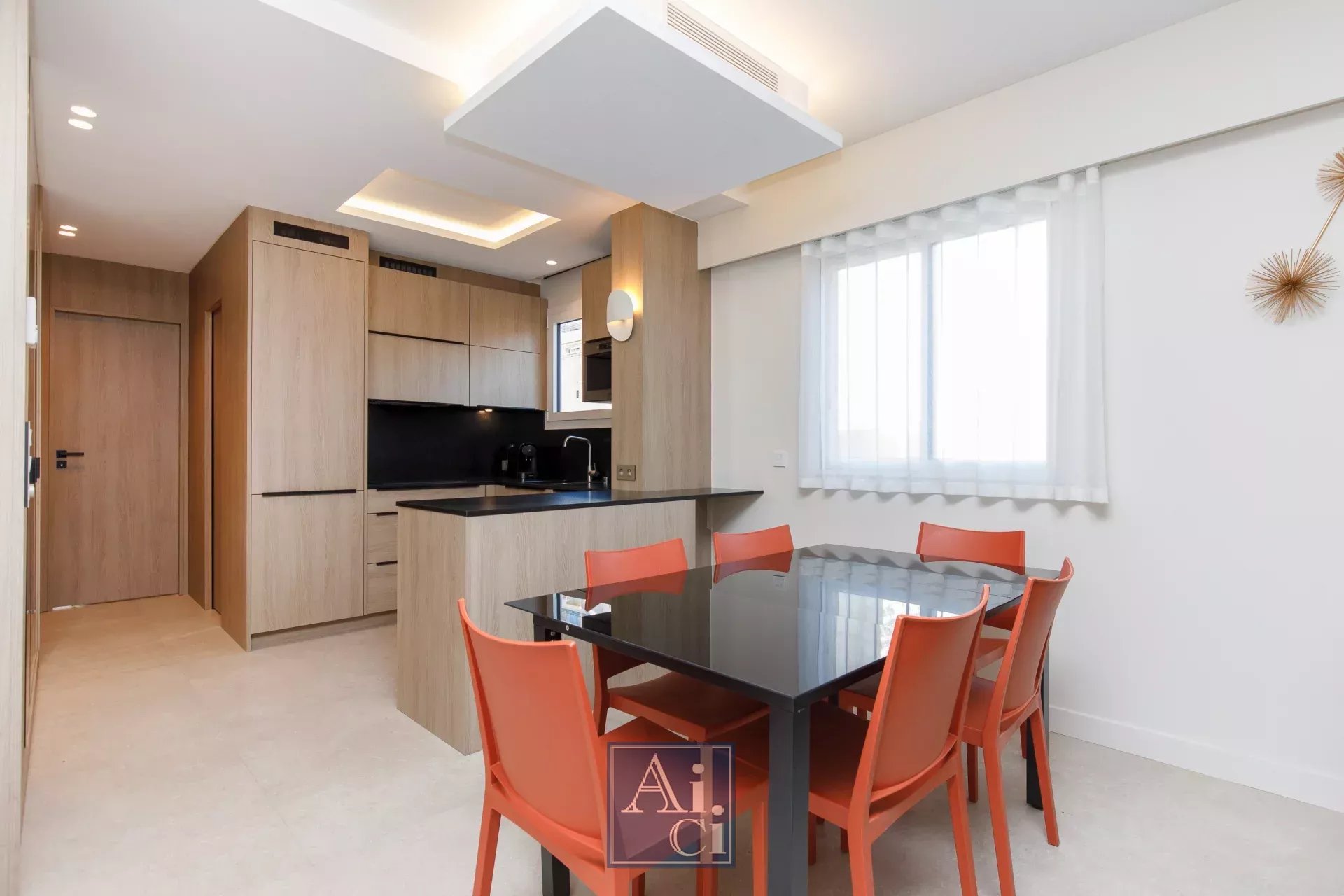 Very nice angle 2 bedrooms apartment, with nice furniture, South exposure, close to the Croisette and the beach, living room with equipped kitchen, 2 bedrooms, 2 shower rooms with toilets.