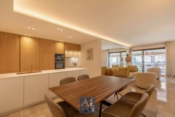 Cannes Gray d'Albion Residence. On a high floor, wonderful 3 bedrooms apartment. Entrance with guest toilets, living and dining room open on large terrace, full equipped open kitchen, 3 bedrooms with 3 bathrooms. A/C. Wifi.