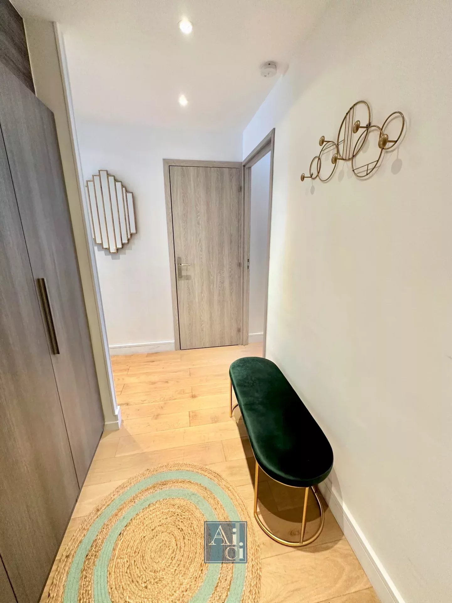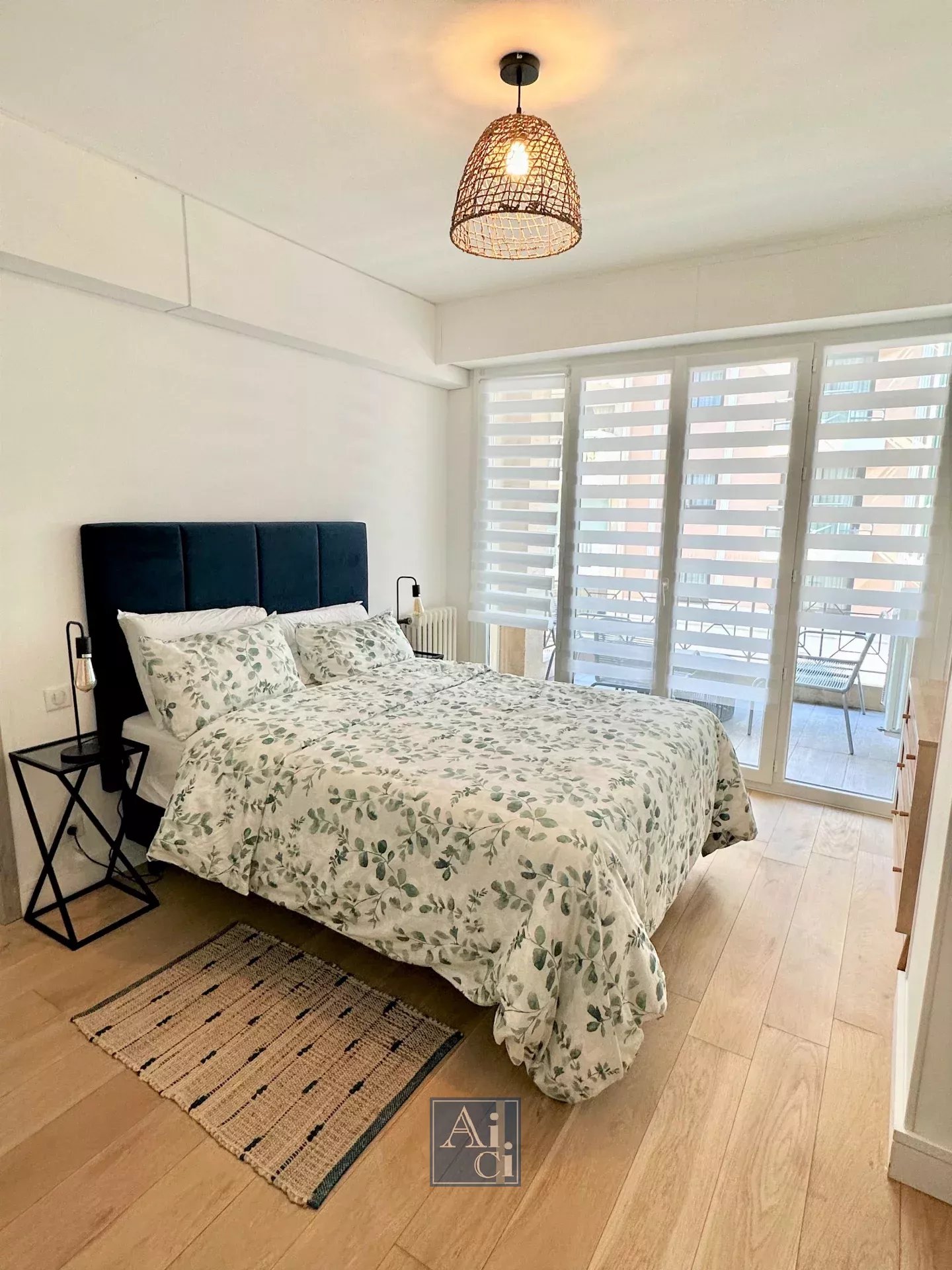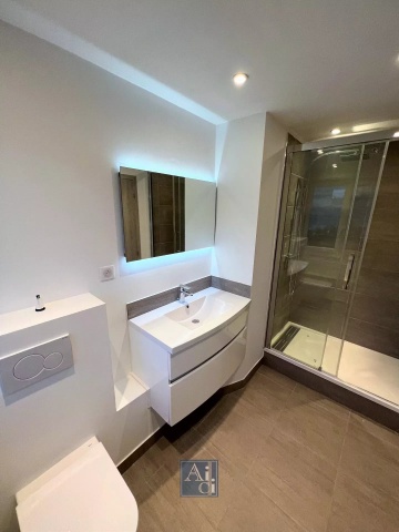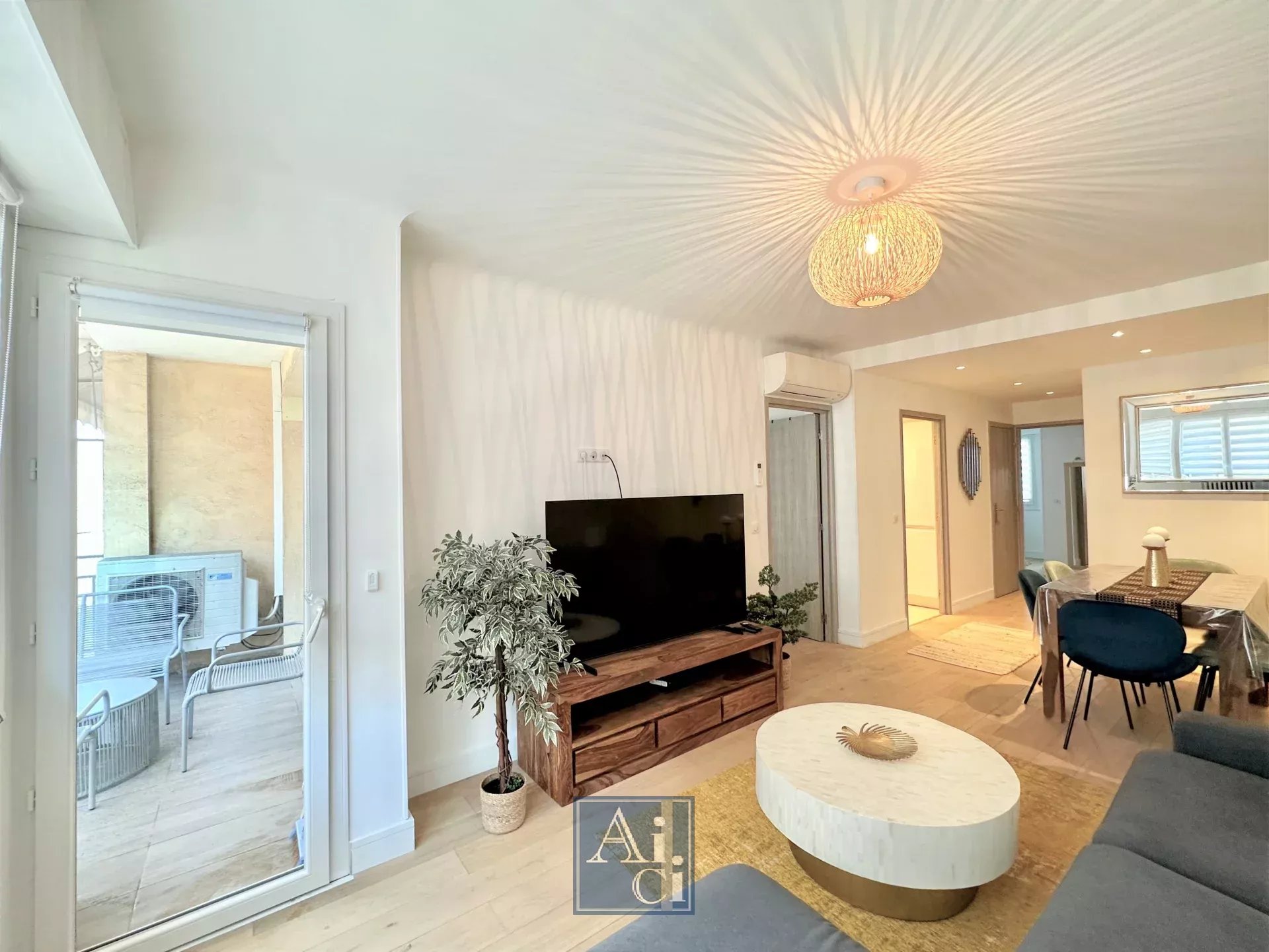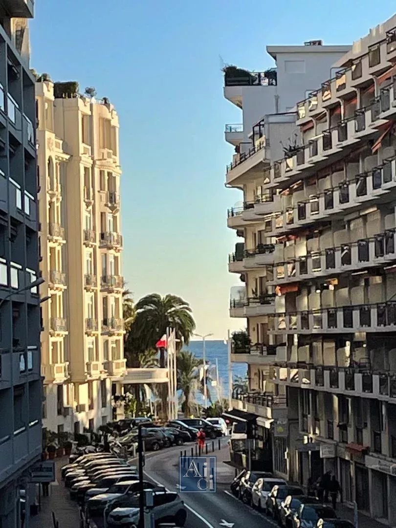 Cannes near the Martinez Hotel. New 2 bedrooms apartment. Entrance with guest toilets, large living room, equipped kicthen, 2 bedrooms with 2 bathrooms. Balcony with lateral sea view. A/C. Wifi.