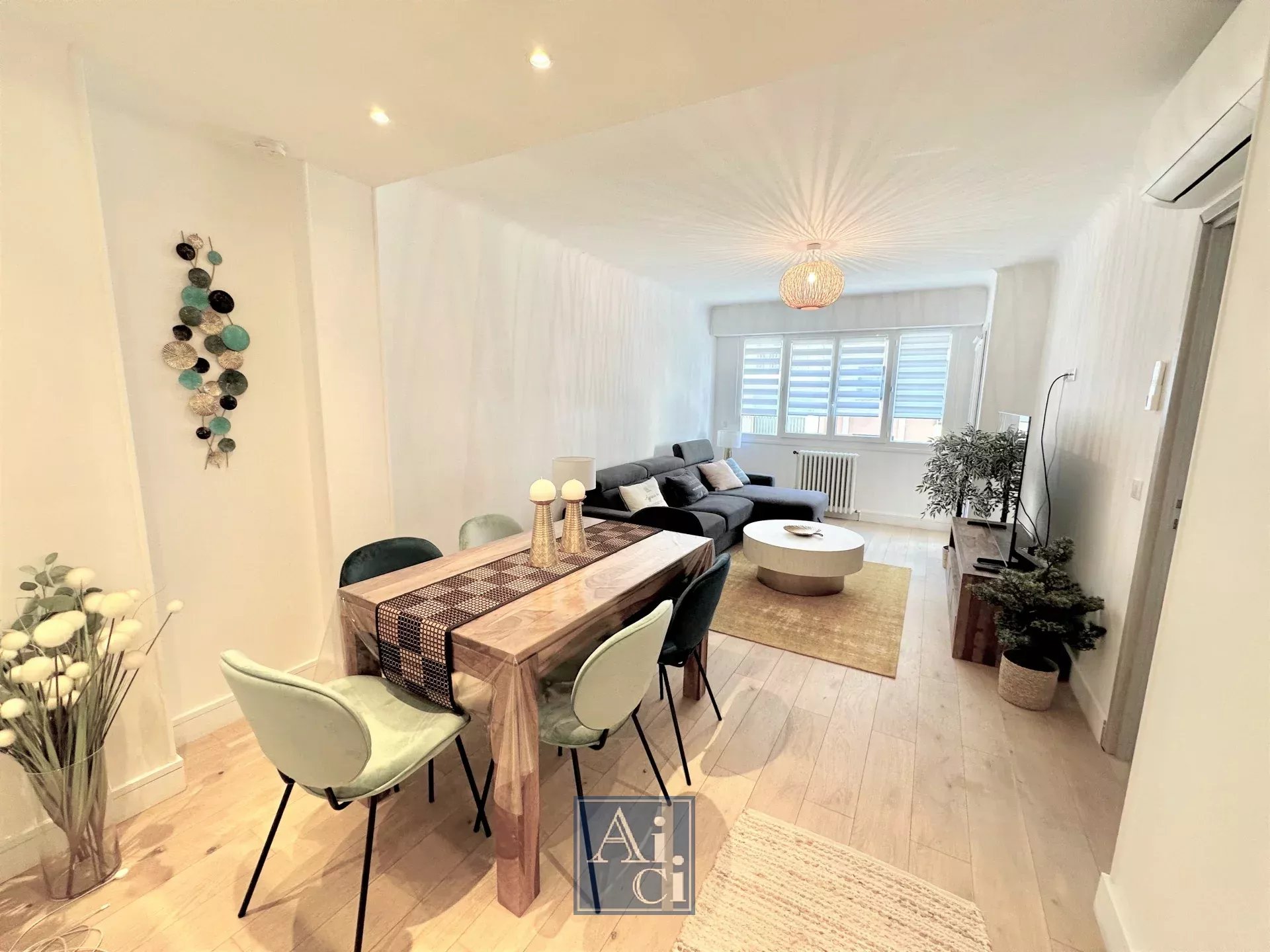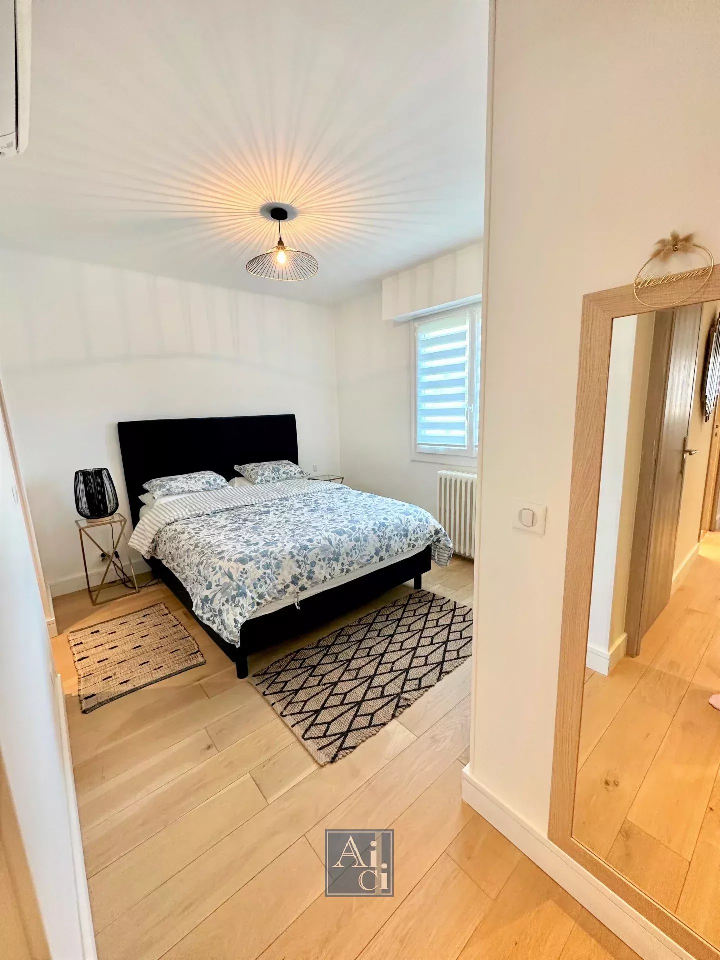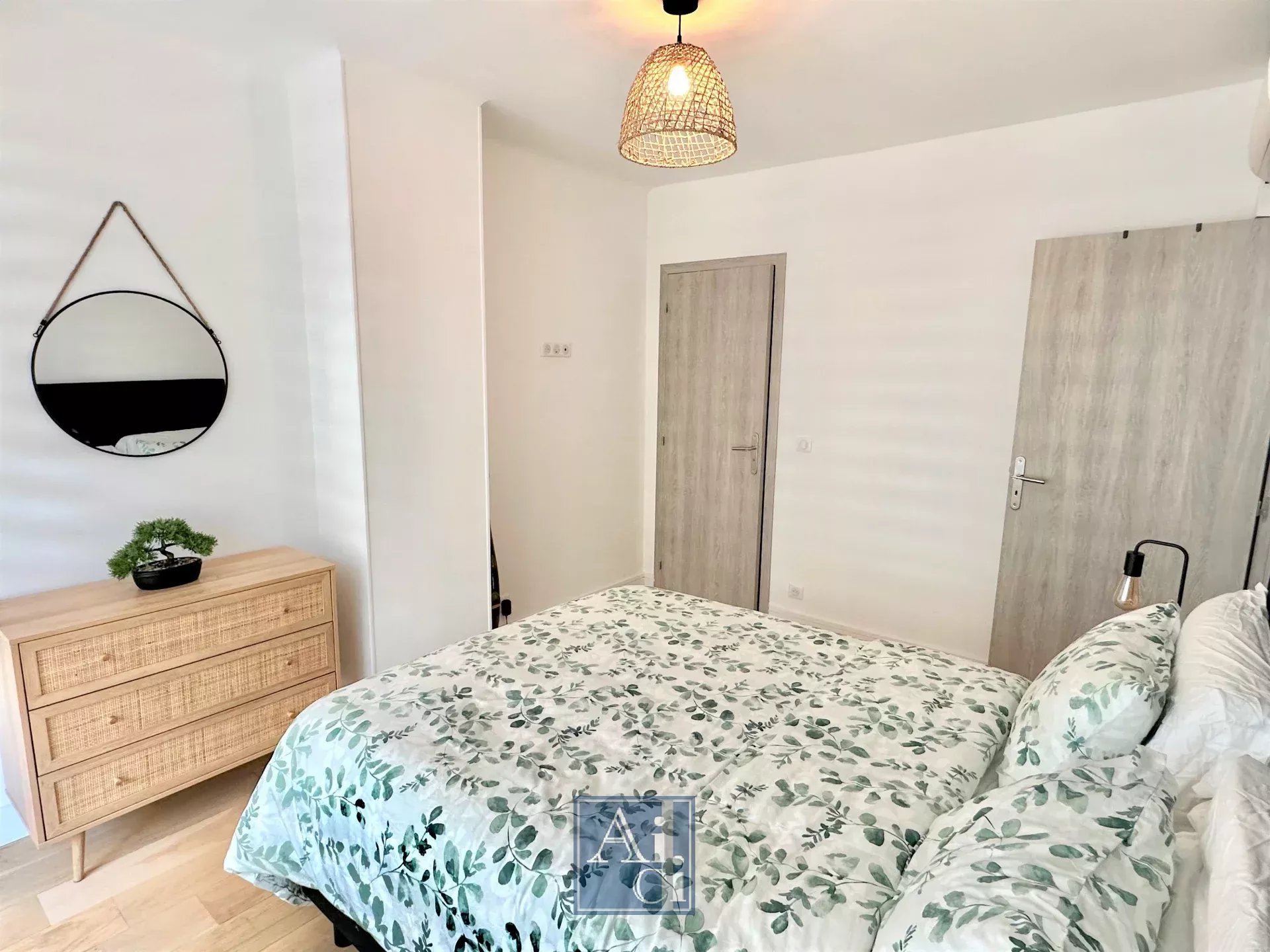 Cannes near the Martinez Hotel. New 2 bedrooms apartment. Entrance with guest toilets, large living room, equipped kicthen, 2 bedrooms with 2 bathrooms. Balcony with lateral sea view. A/C. Wifi.