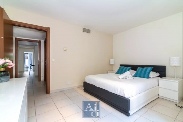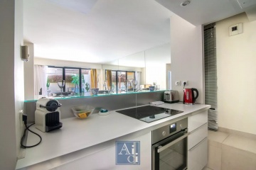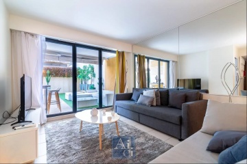 Cannes Saint Nicolas à 5minutes à pieds de la Rue d'Antibes - Résidence de standing gardiennée Les Jardins de Saint Nicolas. Spacieux 4 pièces de 88m² avec jardin surélevé de 55m² plein Sud. Entrée, séjour ouvrant sur terrasse et jardin, belle cuisine américaine entièrement équipée, 3 chambres ouvrant sur la terrasse, 1 salle de bains, 1 salle de douche avec toilettes. Climatisation. Parking en sous-sol. Très belles prestations. Disponible immédiatement.
