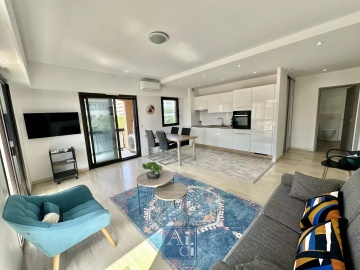 Double vitrage, Fenêtres coulissantes, Internet, Meublé, Volets roulants électriques, Ascenseur, Digicode, Interphone, Cafetière, Cuisinière, Fer à repasser, Four, Lave-linge, Lave-vaisselle, Plaque de cuisson, Réfrigérateur, Sèche-cheveux, Sèche-linge, TV Satellite, Vaisselle, Air conditionné, Éclairage extérieur, Porte blindée, Four à micro-ondes