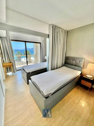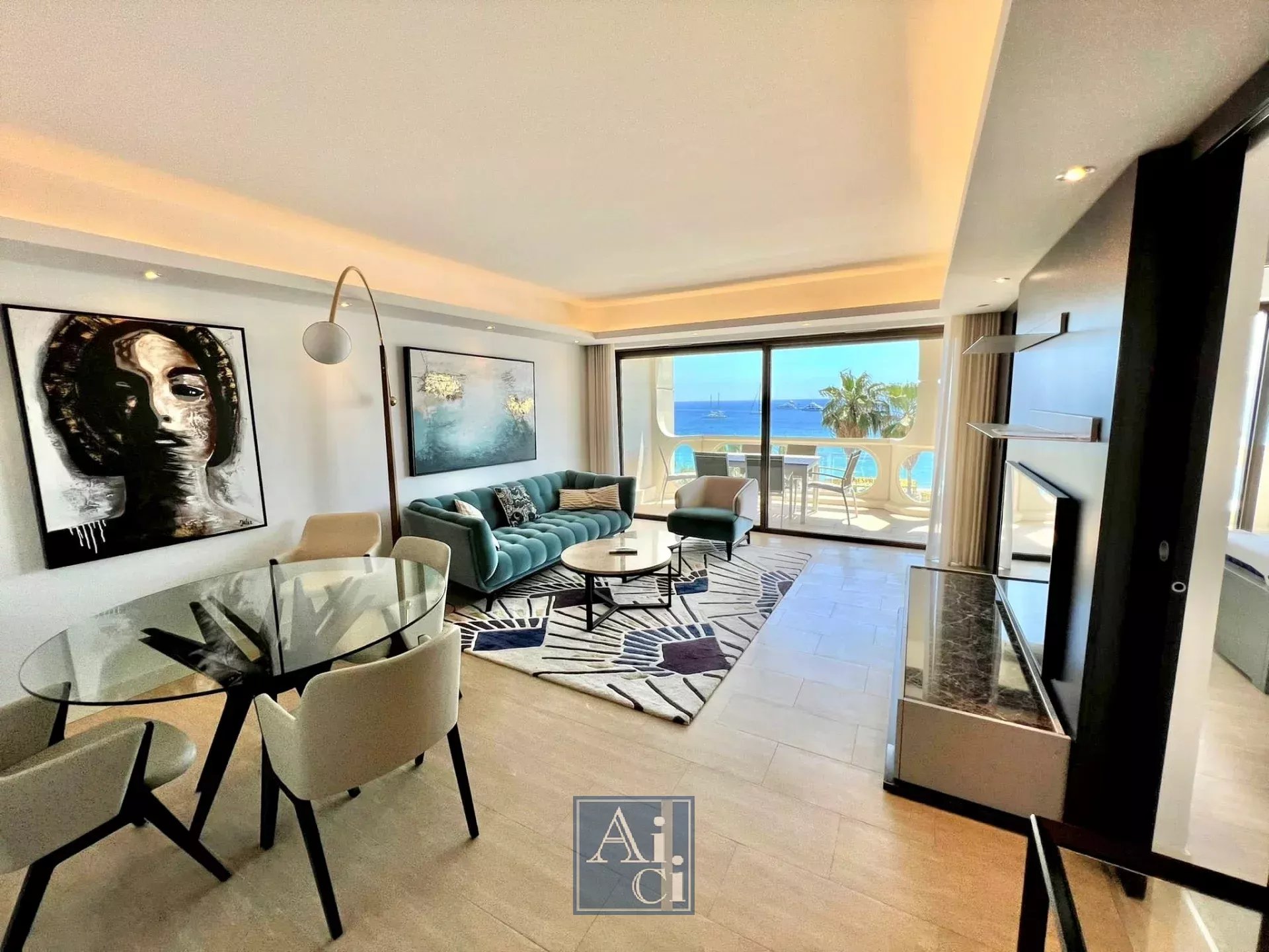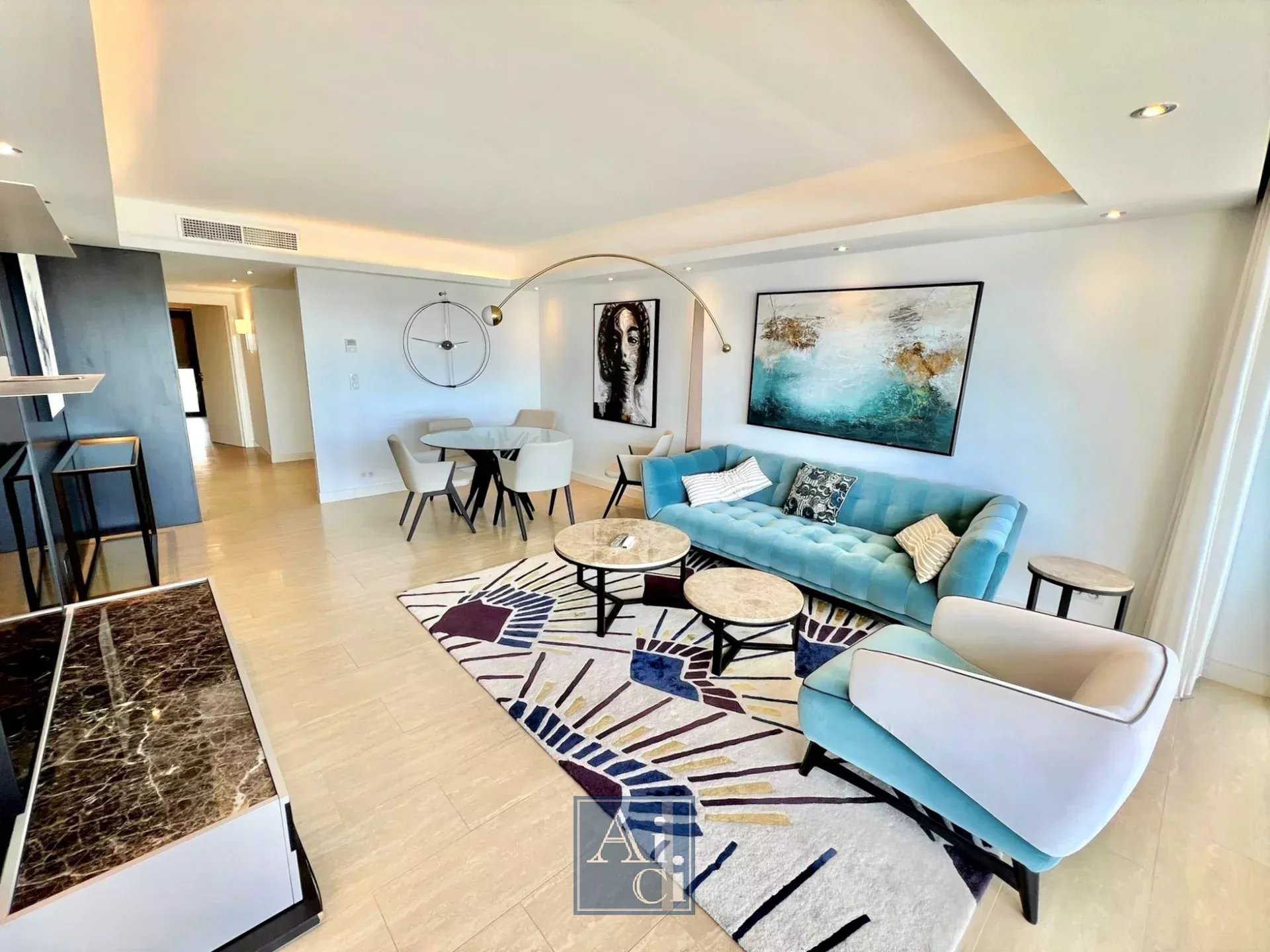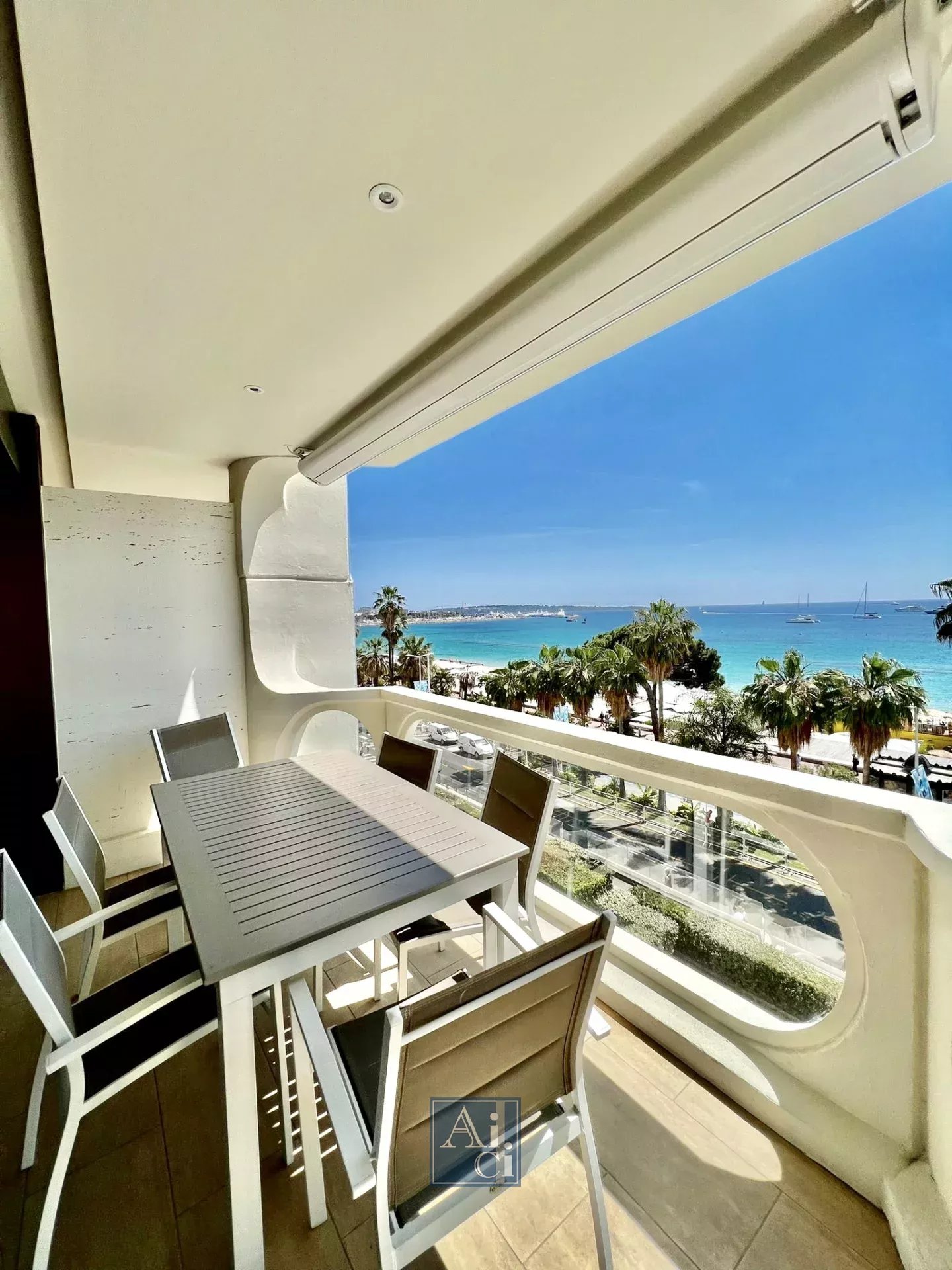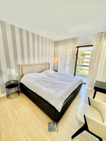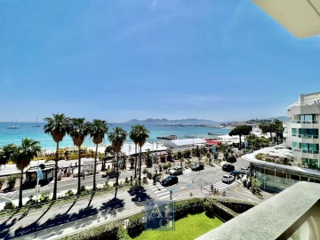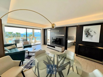 Cannes, dans l'une des plus prestigieuse résidence de la Croisette. A 300m du Palais des Festivals. Magnifique appartement de 3/4 pièces offrant une vue mer panoramique. Entrée avec toilettes invités, séjour ouvrant sur terrasse vue mer, cuisine indépendante équipée, chambre ouvrant sur terrasse vue (possibilité de 2 chambres) avec salle de douche attenante, chambre avec salle de bains attenante. Climatisation. Wifi. Prestations haut de gamme.