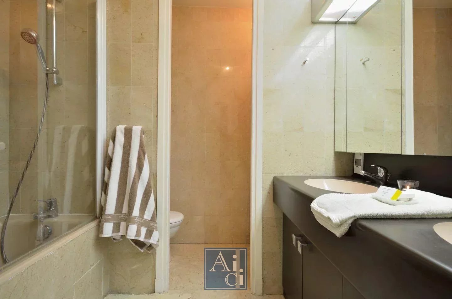 Air conditionné, Fenêtres coulissantes, Meublé, Stores électriques, Volets roulants électriques, Éclairage extérieur, Accès handicapé, Ascenseur, Digicode, Gardien, Porte blindée, Vidéophone, Cafetière, Cuisinière, Fer à repasser, Four, Four à micro-ondes, Lave-linge, Lave-vaisselle, Linge de maison, Plaque de cuisson, Reception 24/7, Réfrigérateur, Sèche-cheveux, Sèche-linge, TV Satellite, Vaisselle