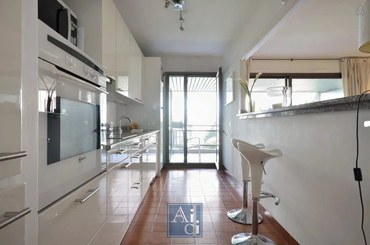 Cannes Gray d'Albion. Magnifique appartement de 2 pièces avec belle terrasse vue sur les jardins. Entrée avec toilettes invités, séjour avec canapé convertible, cuisine indépendante entièrement équipée, chambre avec loggia, salle de bains avec toilettes. Climatisation. Wifi.