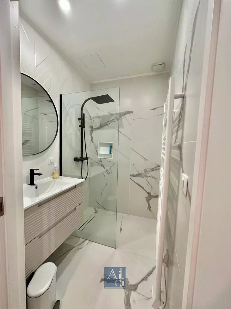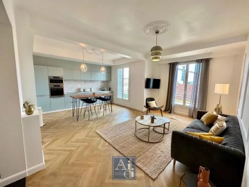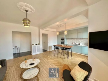 Cannes rue Hoche à 200m du Palais des Festivals. Au 5ème étage avec ascenseur. Magnifique 3 pièces rénové : Entrée avec toilettes indépendants, salon spacieux avec cuisine américaine entièrement équipée, 2 chambres avec 2 salles de douches. Climatisation. Wifi.