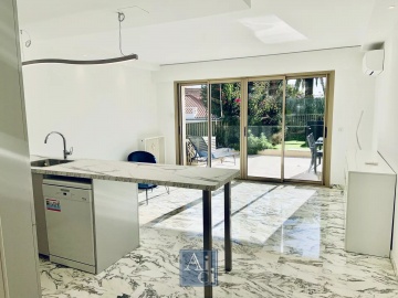 COUP DE CŒUR À CANNES – À 10 MIN À PIEDS DE LA CROISETTE. BEL APPARTEMENT RÉNOVÉ DE 45M² AVEC TERRASSE ET JARDIN DE 60M² PLEIN SUD, SANS VIS-À-VIS, AU CALME. SÉJOUR OUVRANT SUR LE JARDIN, CUISINE AMÉRICAINE ÉQUIPÉE, CHAMBRE AVEC PLACARDS AMÉNAGÉS, SALLE DE DOUCHE À L'ITALIENNE. CAVE EN SOUS-SOL. HAVRE DE PAIX. PARKING DISPONIBLE DANS LA RÉSIDENCE.